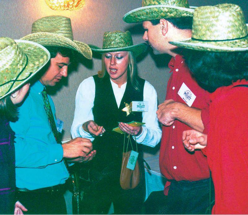 Trading Post是一个超负荷的游戏,内容是信息收集,讨价还价及建立信任 - 这是一个很好的破冰游戏或会议插曲。游戏里的Trading post是一个在19世纪60年代名为道奇市的城市,这是一个狂野与无法无天的城市 - 这时代充满着机会,而灾难正在等待着不知所措的人民。游戏时间横跨的幅度超过4年以上。在每年年初,团队要进行交易,而年终时亦须要返回到各自的货车,支付一些货物。在这里,不同的家庭分享着各样情报。随着游戏的进行,团队需要与其他团队发展关系,分享各自获得的情报。